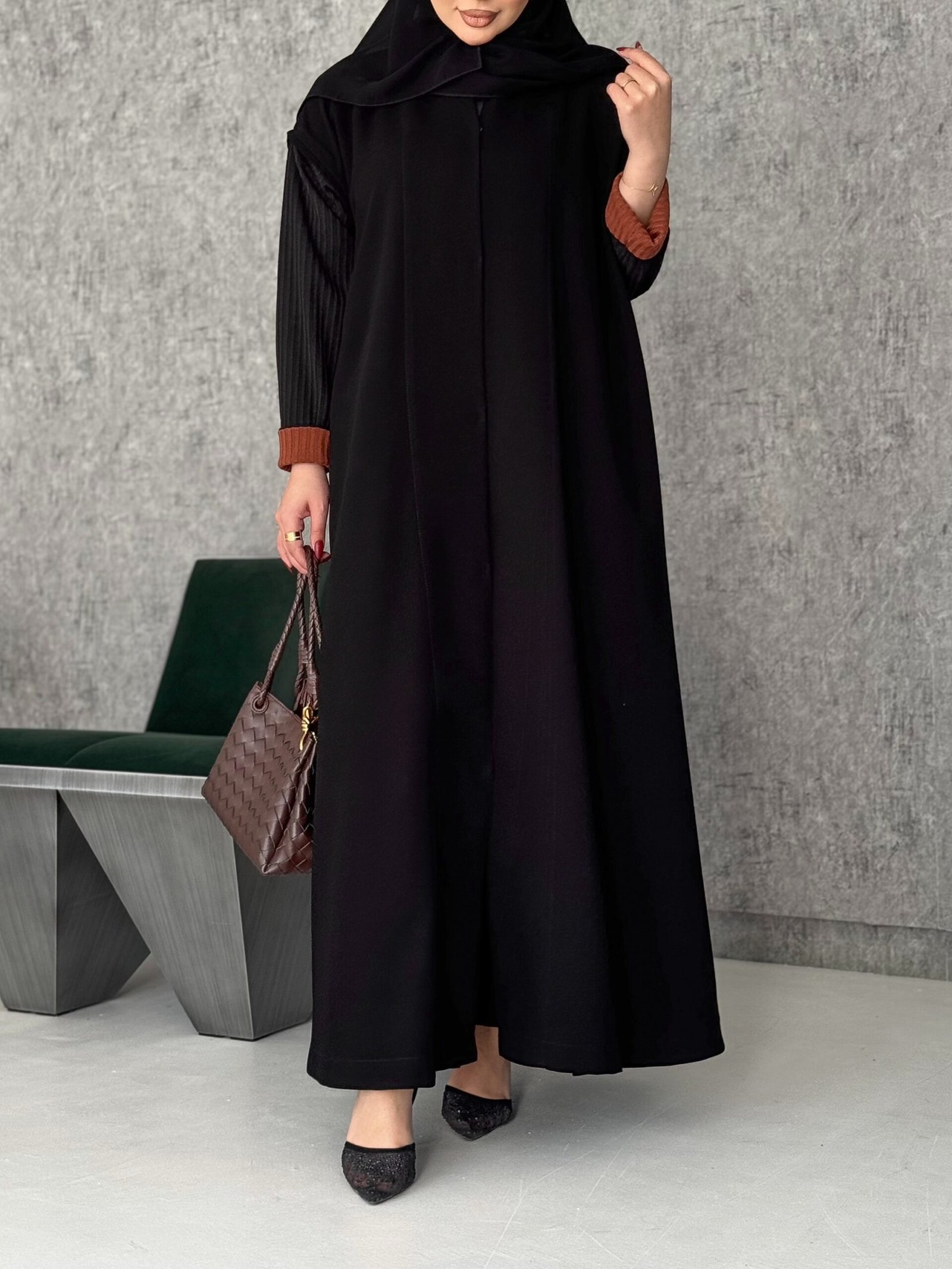 عبايه بقصه ملكيه باكمام تيريكو تعبتر ربيعيه اذا تبون الاكمام كامله خام العبايه كتبو ملاحظه القياسات الطول الكتف طول الاكمام